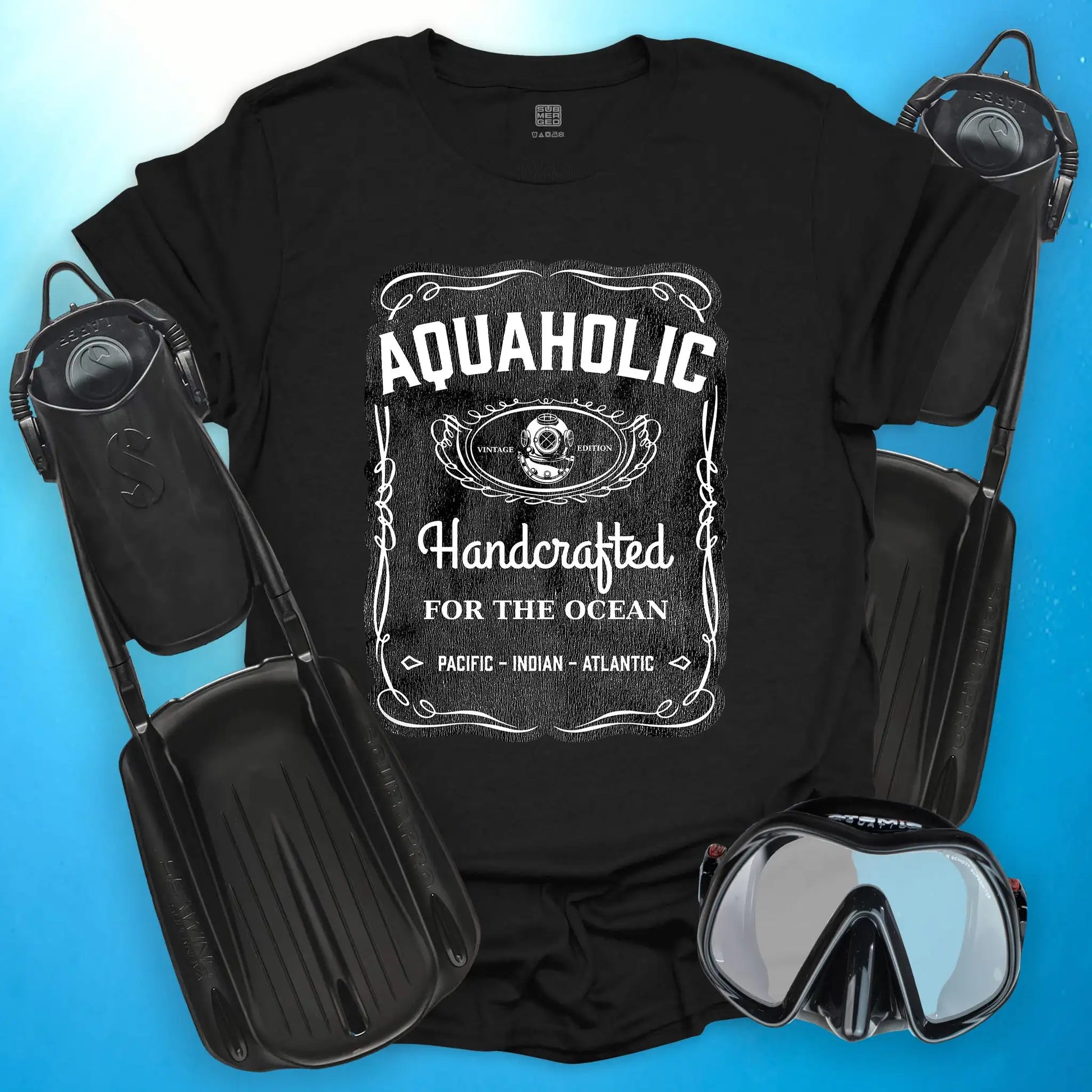 For those who can’t get enough of the big blue, the Aquaholic T-Shirt says it all. Styled like a vintage whiskey label, this design features a classic dive helmet and the bold declaration: Handcrafted for the Ocean. Whether your heart belongs to the Pacific, Indian, or Atlantic, this tee wears your obsession proudly.