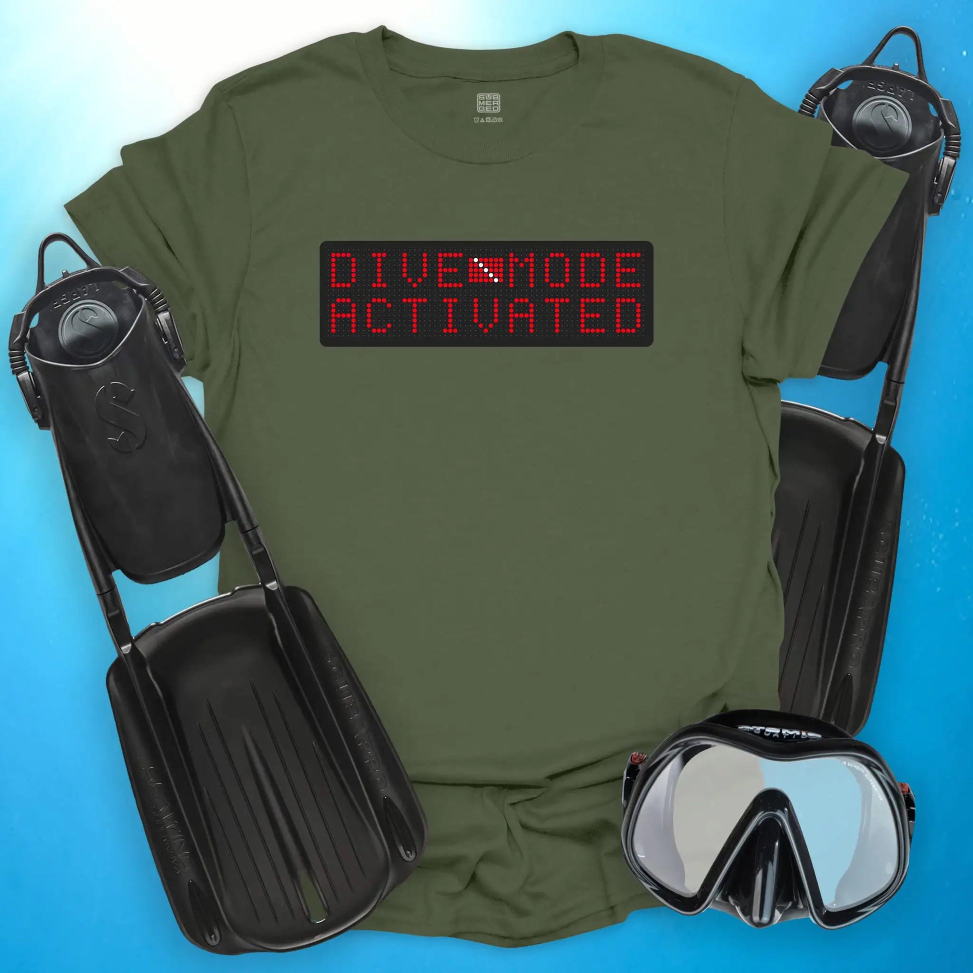 Flip the switch and drop beneath the waves—the Dive Mode Activated T-Shirt is your go-to uniform for underwater adventures. Styled like a glowing LED display with the iconic dive flag, this bold design announces exactly where your mind (and heart) is.
