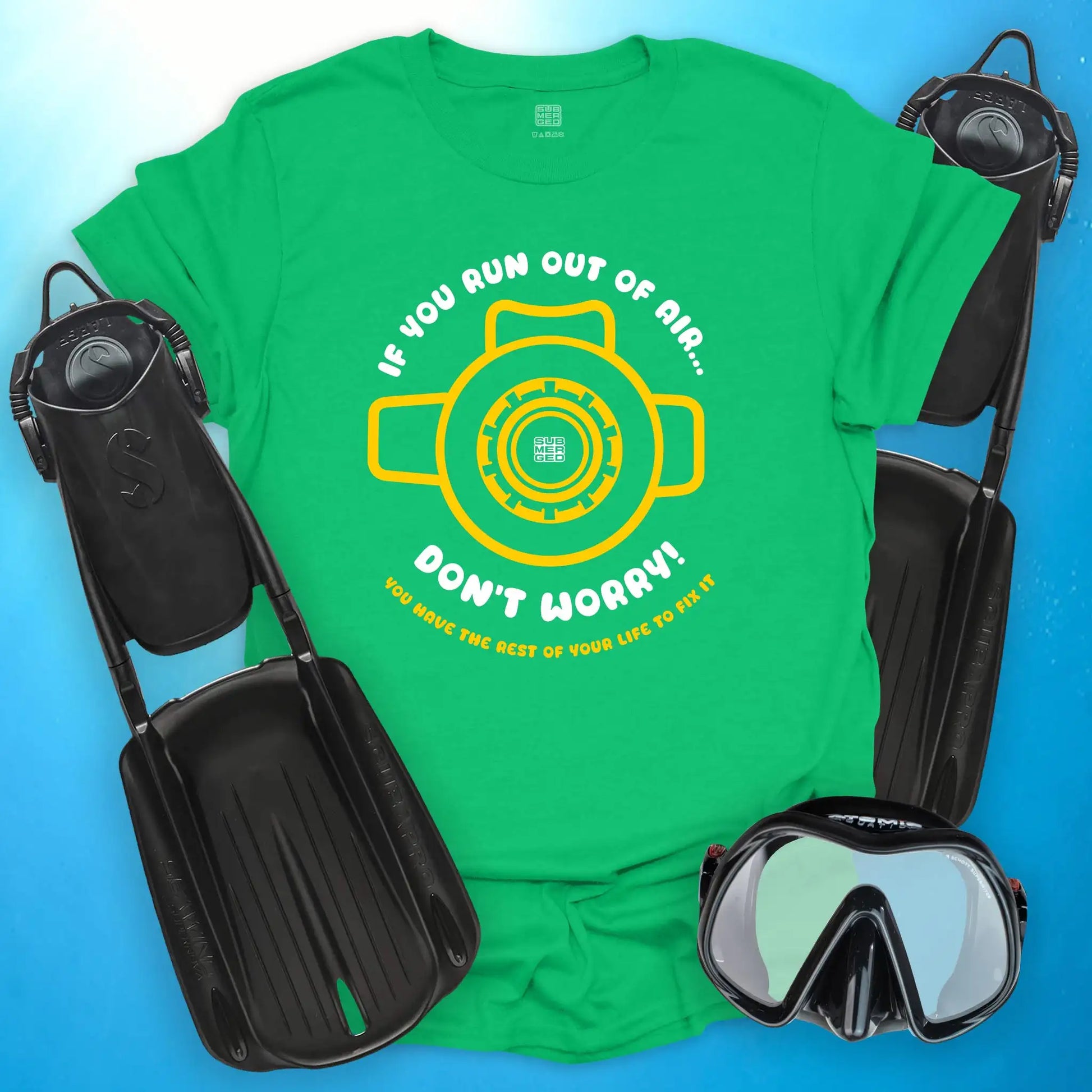 Show off your dark diving humor with this bold scuba design featuring a regulator and a cheeky message every diver will understand. Perfect for those who live for life underwater and love a good laugh, this shirt is printed on the soft, durable Gildan 64000 Softstyle, built for comfort and lasting wear on land or sea.