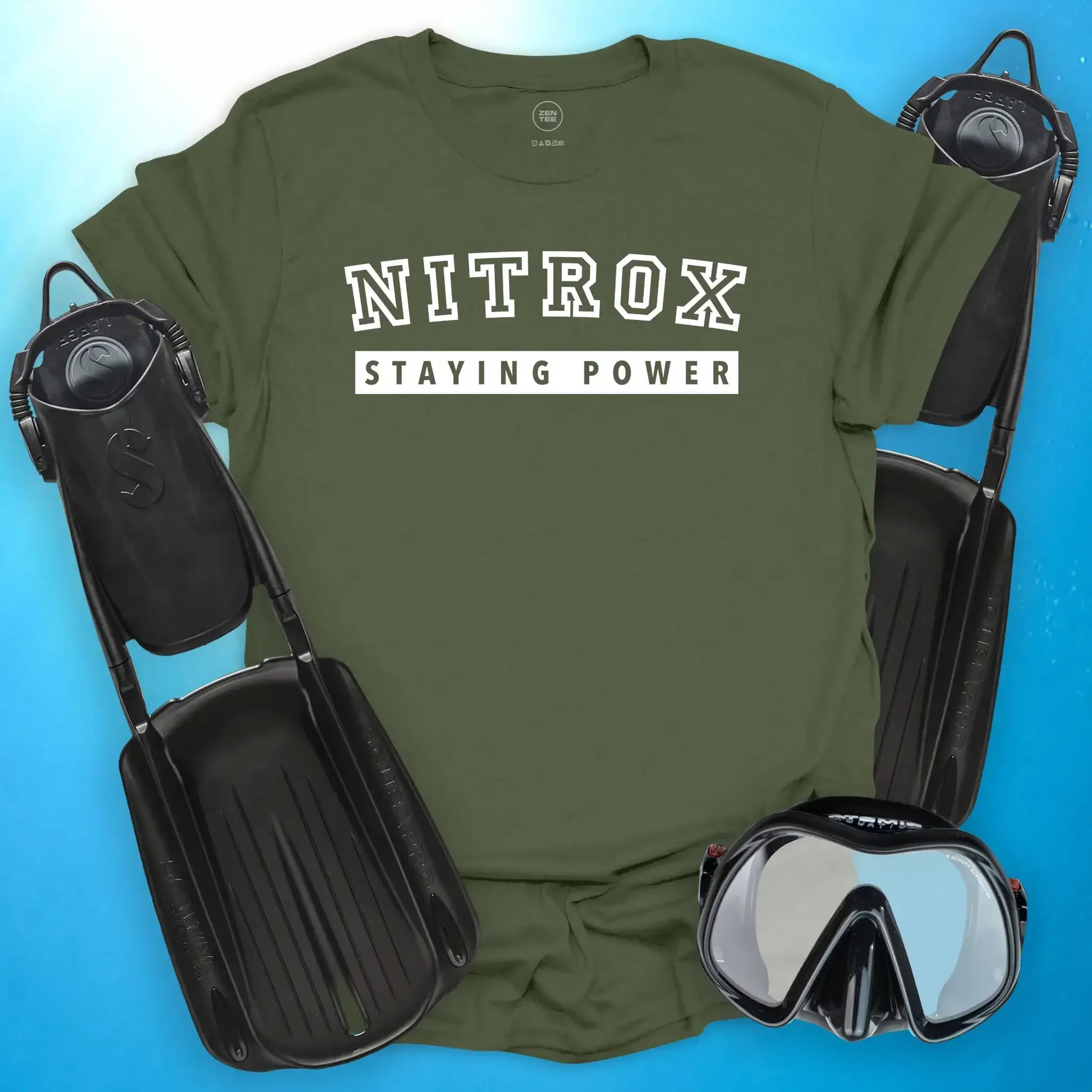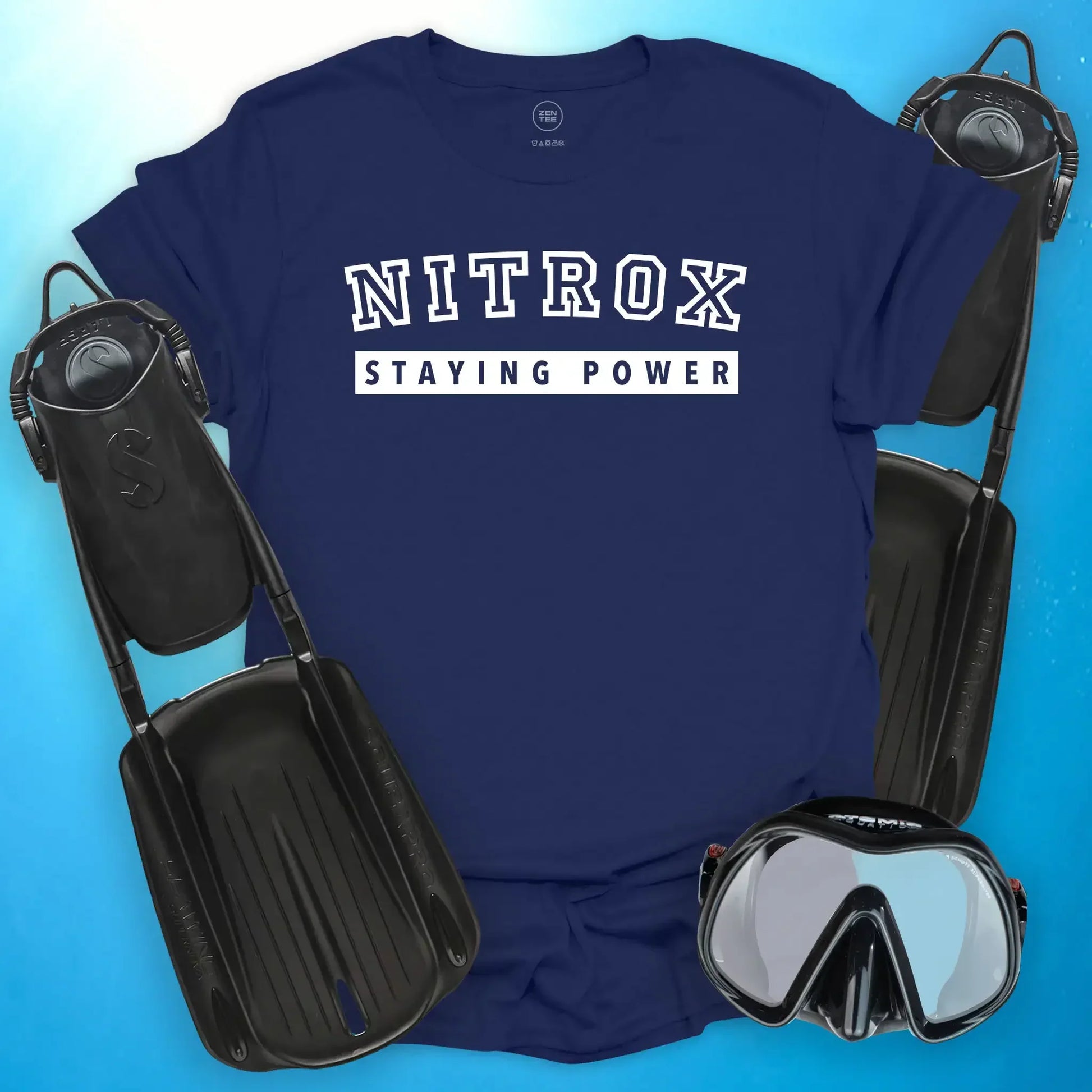 Show your dive-savvy strength with the Nitrox Staying Power T-Shirt. Inspired by enriched air divers who go the distance, this design pairs collegiate lettering with clean, bold typography that nods to your elevated bottom time and unmatched endurance.