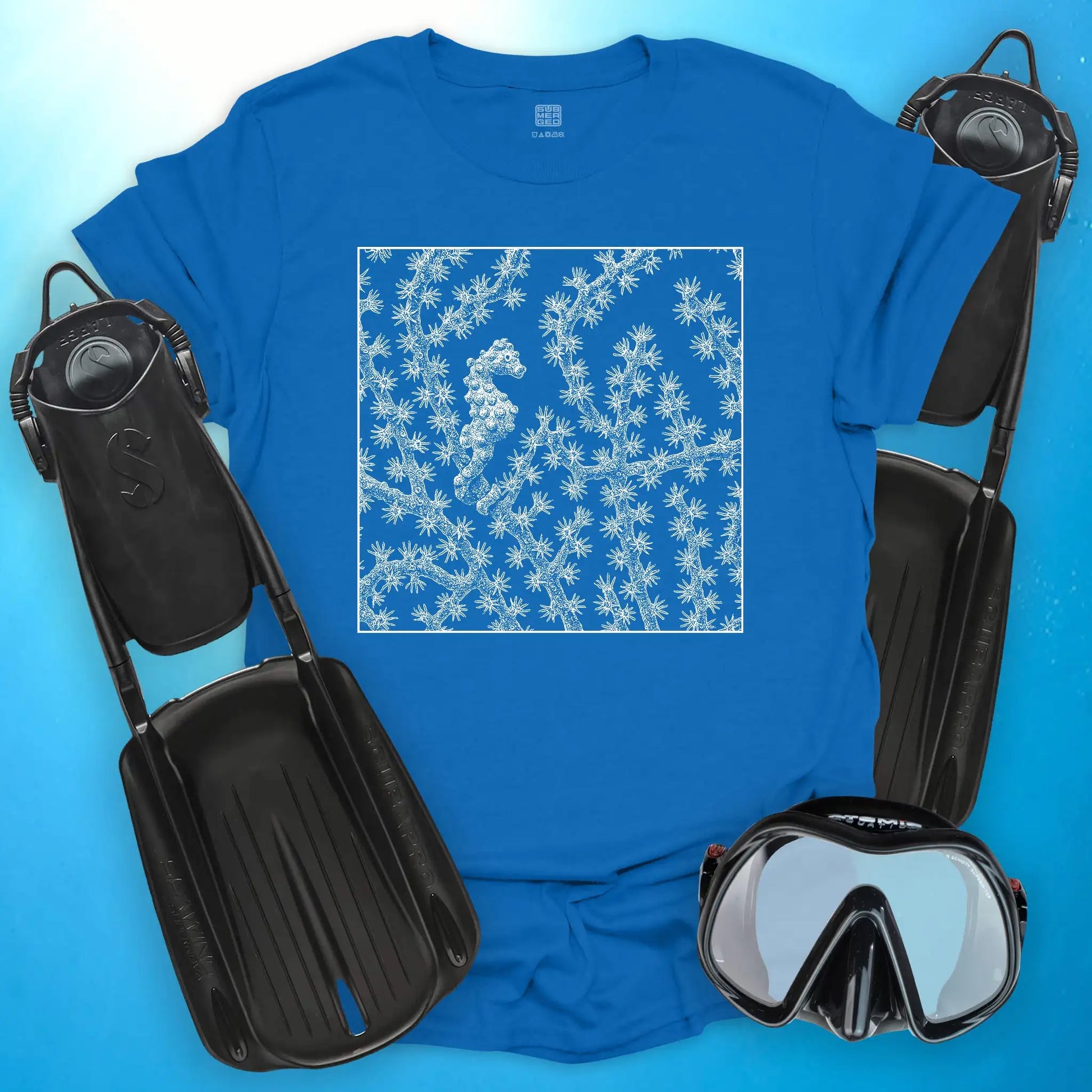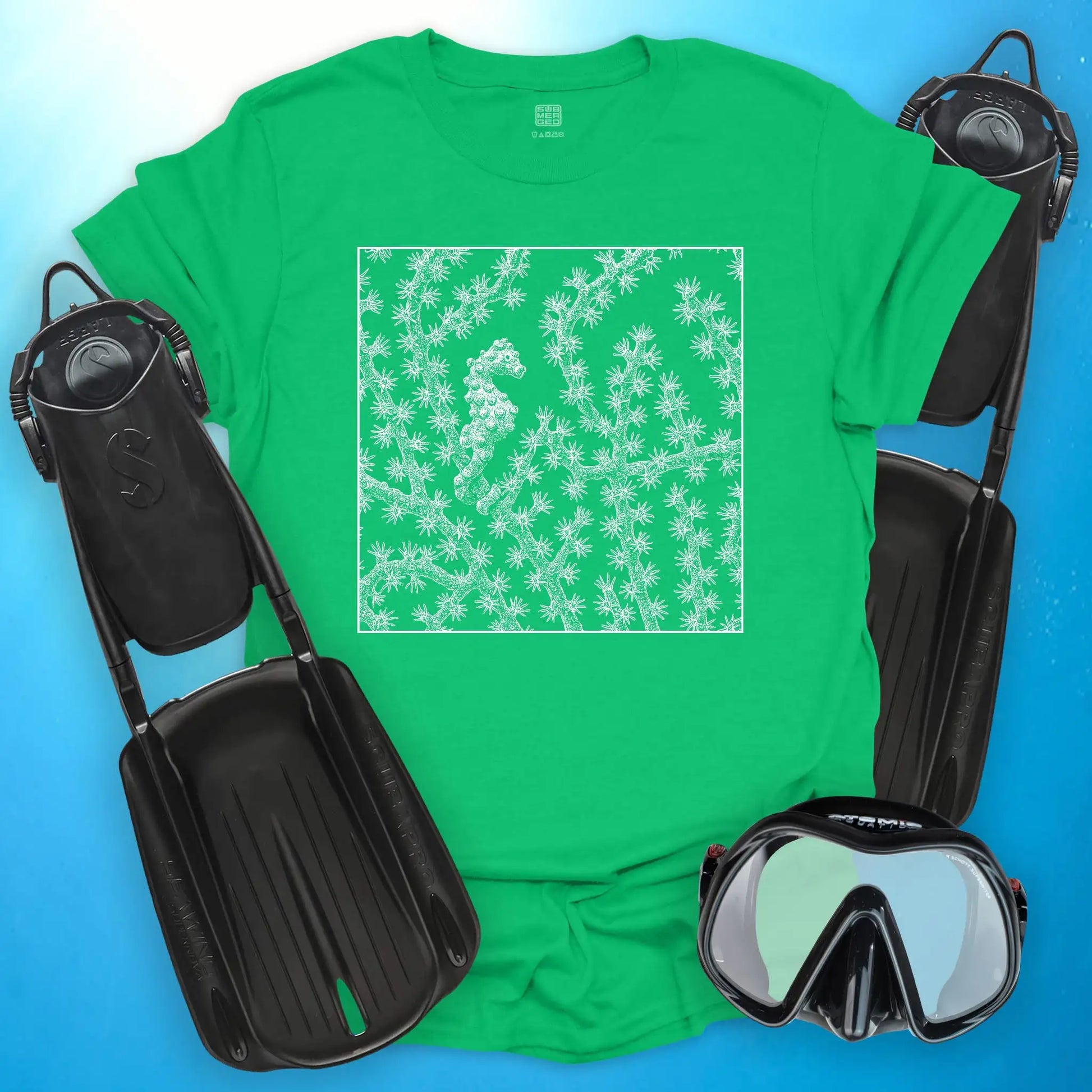Celebrate the art of camouflage with the Pygmy Seahorse Square T-Shirt. This detailed design features a perfectly hidden pygmy seahorse nestled among coral, a scene every diver dreams of spotting underwater. Printed on the soft and breathable Gildan 64000 Softstyle tee, it’s ideal for dive trips, casual wear, or showing off your love for rare marine life. A must-have for scuba divers and ocean enthusiasts alike.