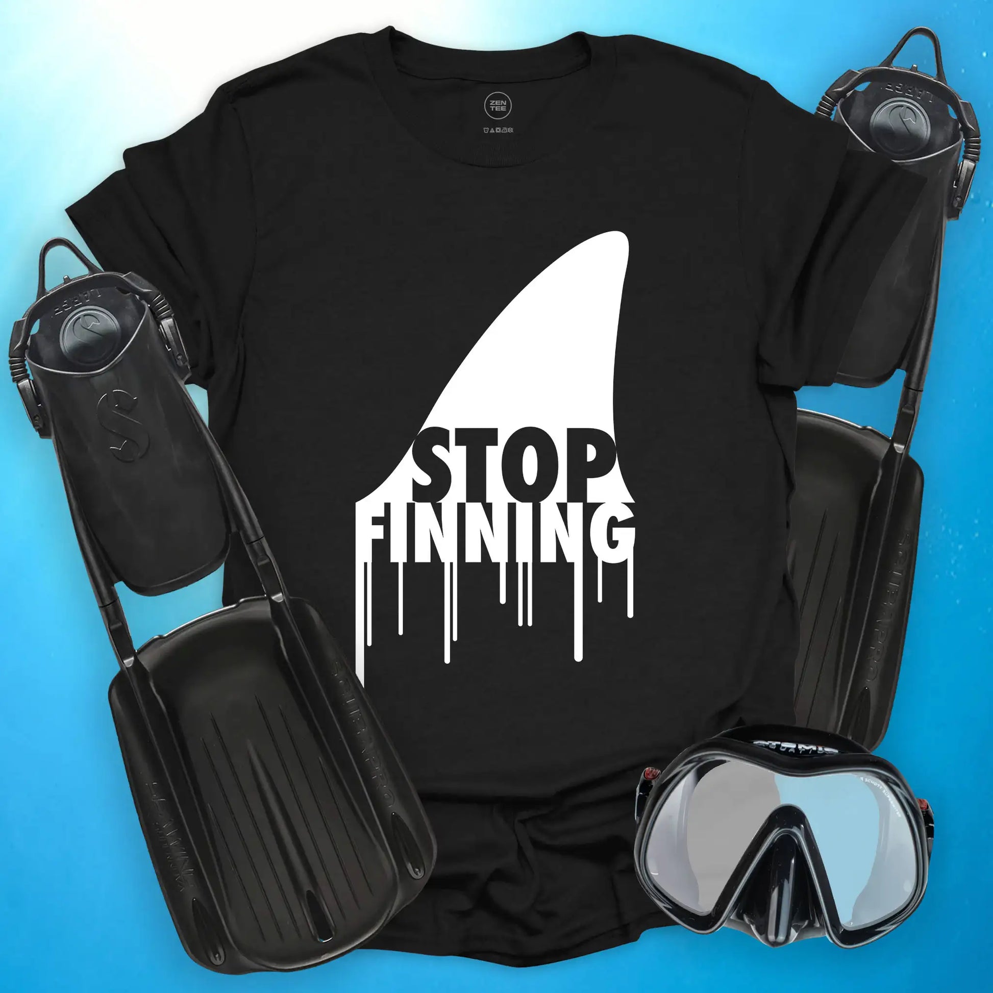 Make a bold statement for ocean conservation with the Stop Finning T-Shirt. Featuring a striking red shark fin and dripping text, this graphic is a powerful protest against the cruel practice of shark finning. It's a must-have for divers, activists, and anyone who gives a damn about marine life.